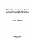 Trigueros, J. 2010. Efecto de la concentración de goma Xanthan y pH de la miel de fruta en las características físico-químicas de la miel cremada saborizada. Proyecto especial de graduación del programa de Ingeniería en Agroindustria Alimentaria, Escuela Agrícola Panamericana, Zamorano. Honduras. 24p. Los consumidores exigen actualmente productos naturales, de buen sabor y saludables. El objetivo del estudio fue determinar el efecto de la concentración de goma Xanthan y de la miel de fruta en las características físico-químicas de la miel cremada saborizada. Para el análisis estadístico de los datos se utilizó un diseño experimental de bloques completamente al azar (BCA), con tres medidas repetidas en el tiempo (días 1, 7 y 15) y tres repeticiones, con un total de 36 unidades experimentales. Se evaluaron dos concentraciones de goma Xanthan (0.25 y 0.5%) y dos sabores de miel de fruta (guayaba y mora). Las evaluaciones químicas de pH, muestran que la mayor media fue para los tratamientos sabor guayaba y mora 0.5% goma Xanthan, para estos la acidez disminuyó, causado por la concentración de goma Xanthan y los metoxilos de la guayaba, para el análisis físico de viscosidad existieron diferencias significativas (P< 0.05), obteniendo la mayor media el tratamiento sabor guayaba 0.5% goma Xanthan siendo el más viscoso, esto podría estar relacionado con la concentración de goma Xanthan y los metoxilos de la guayaba. Los panelistas no encontraron diferencias sensoriales entre tratamientos para aroma, acidez, sabor y aceptación general, excepto en el atributo de apariencia, el tratamiento guayaba 0.5% Xanthan, presentó la mejor aceptación. Los costos variables fueron de L. 17.82 para los tratamientos sabor guayaba y mora 0.25% goma Xanthan y de L. 18.32 para los tratamientos sabor guayaba y mora 0.5% goma Xanthan, para una presentación de 250 g.